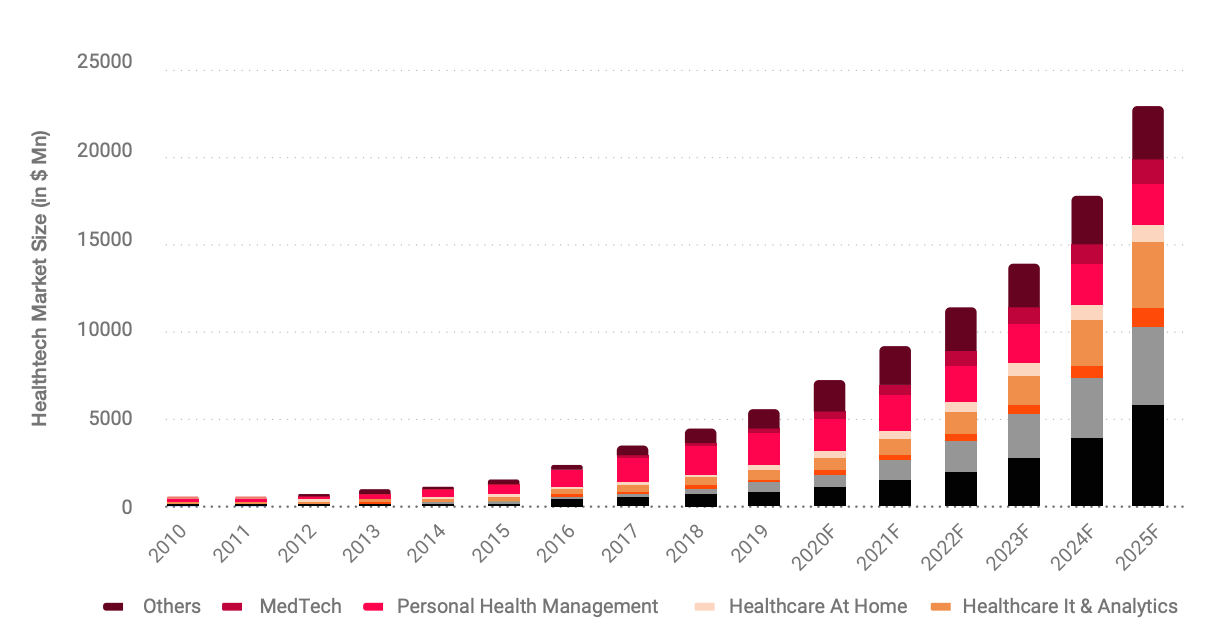 From wearables, telemedicine, online appointment booking, online medicine ordering, digital payment, genomics, database management, home healthcare, and diagnostics to monitoring health conditions through app or web portals, the Healthtech industry is opening a new dimension in the healthcare industry.