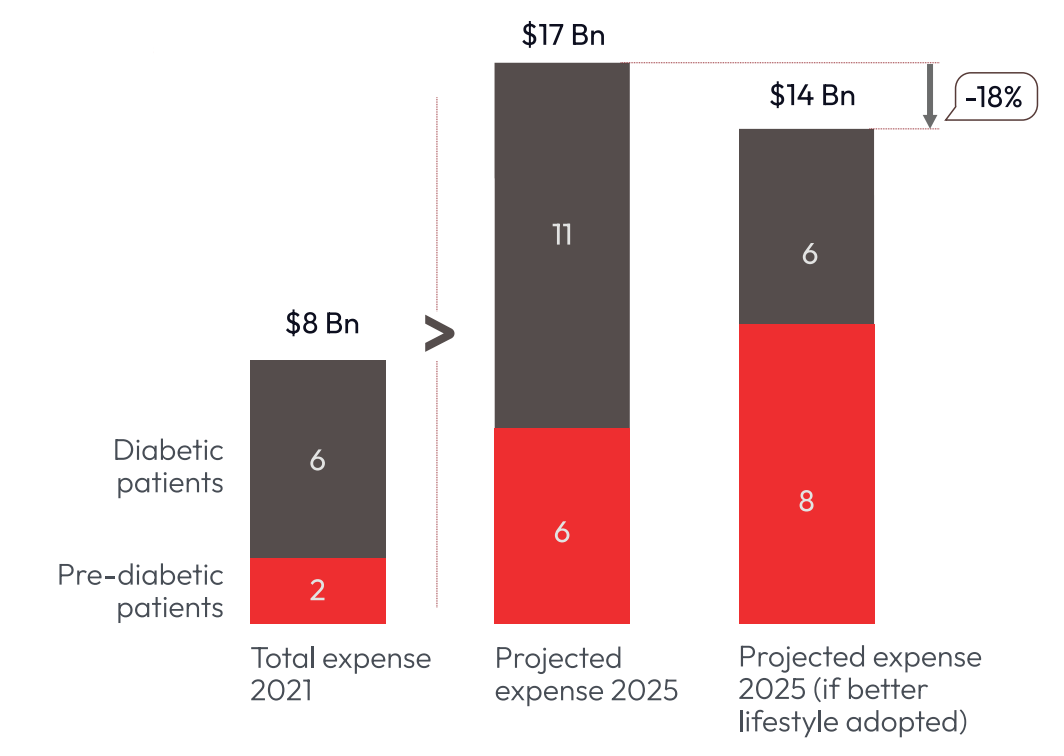 >$3B saved due to diabetes-related complications if healthy lifestyle habits are followed